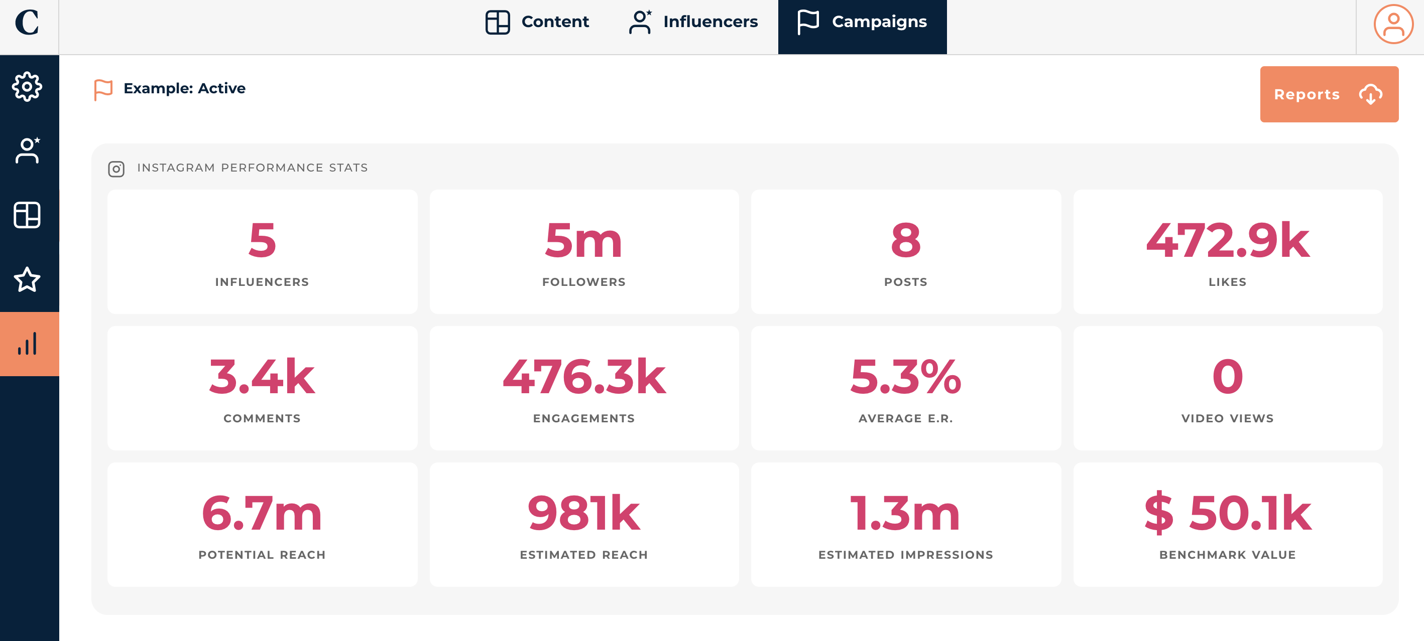 4. PDF Download – need a quick report to show your team? Companion is here for you! You can simply click Reports and download the latest up to date stats of your campaign, showcasing all the top line stats and content posted